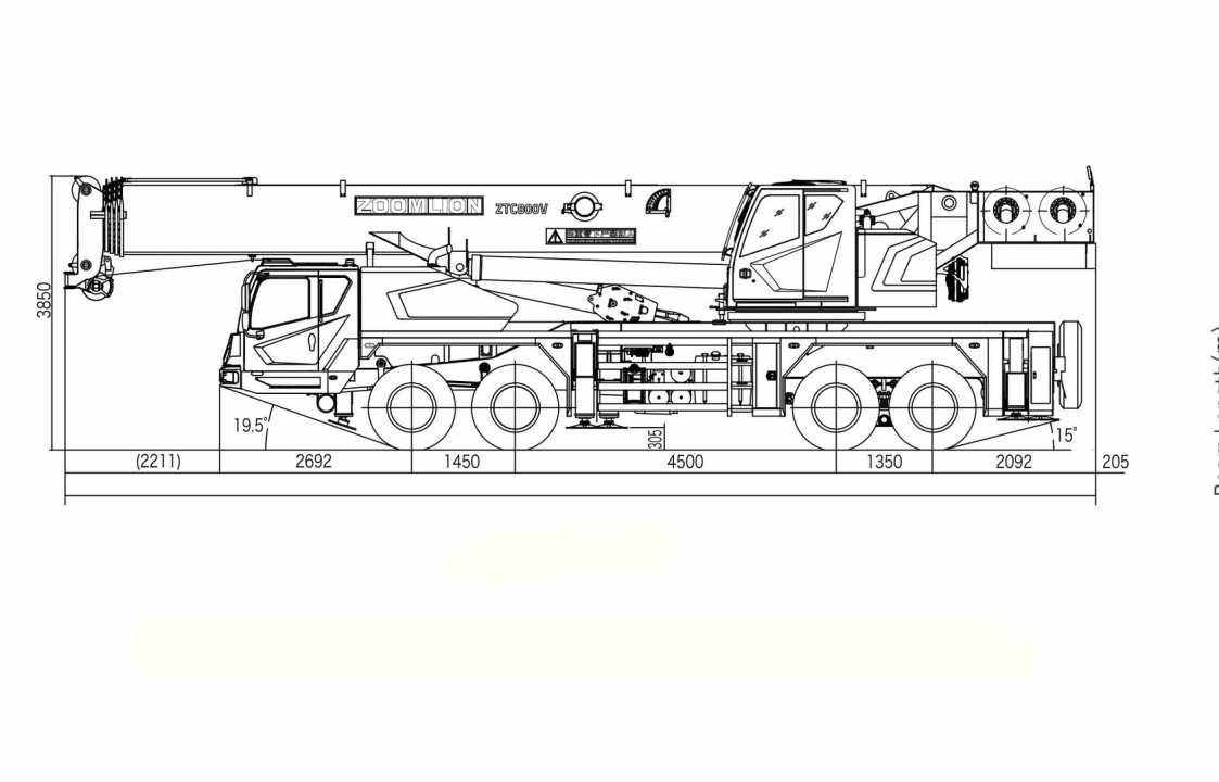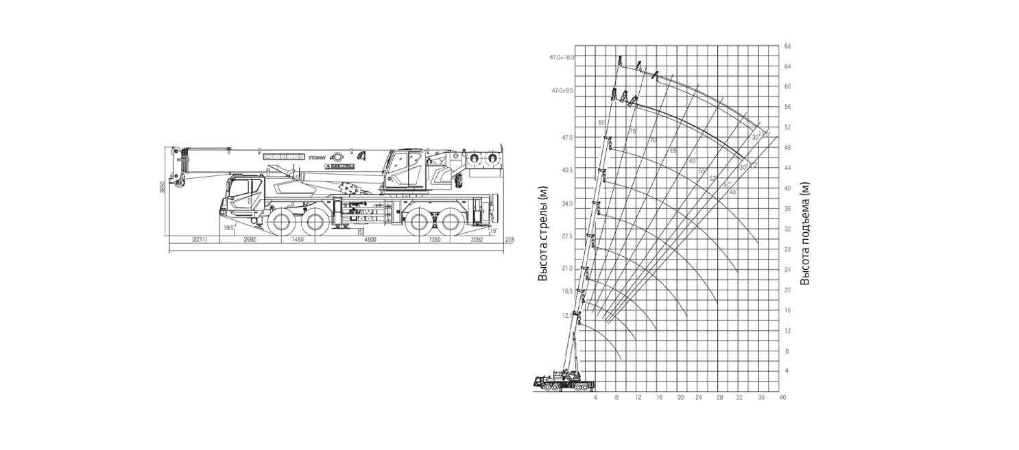 Технические характеристики автокрана 80 т ZOOMLION ZTC800V: